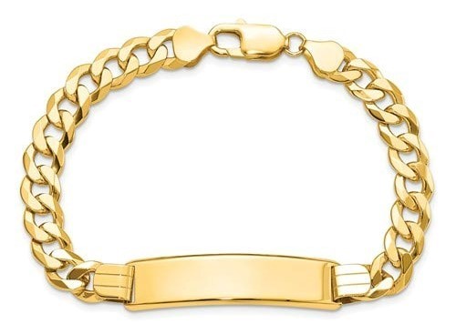 ID Plate 10 x 40mm with Concave Curb Link 8.5″ Bracelet 10KT/8MM *Engravable