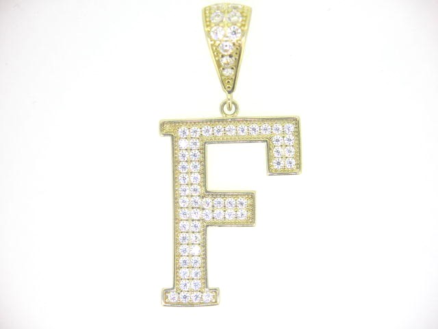 F Block Initial with Cubic Zirconia Pave Pendant 10KT/25MM