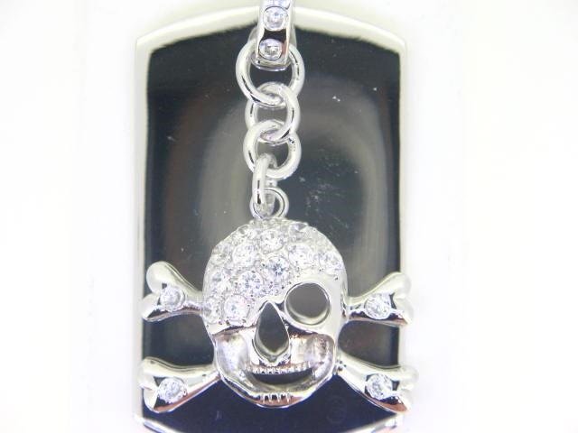 Cubic Zirconia Skull Dog Tag Sterling Silver/50MM *CLEARANCE-FINAL SALE*