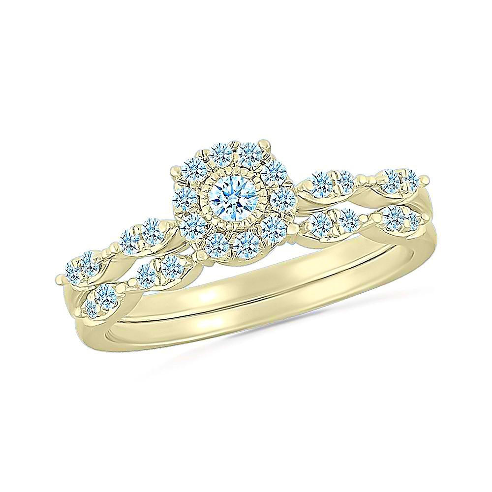 .33TCW Diamond Halo Vintage Style 2 Pce Engagement Set 14KT