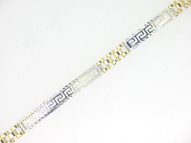 Greek Key Bar & Panthera Link 7.5″ Bracelet 10KT TT/5MM