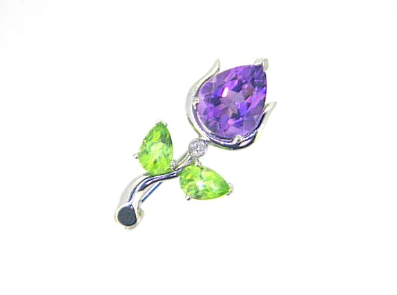 Genuine Amethyst Peridot & Diamond Tulip Flower Brooch 14KT WG *Converts to Pendant* **CLEARANCE-FINAL SALE**