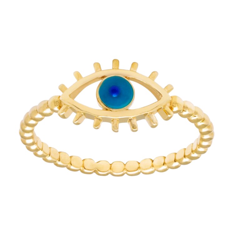 Blue Evil Eye w/ Lashes Beaded Band Ring 10KT/SIZE 8
