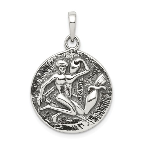 Aquarius Zodiac Round Antiqued Sterling Silver/20MM