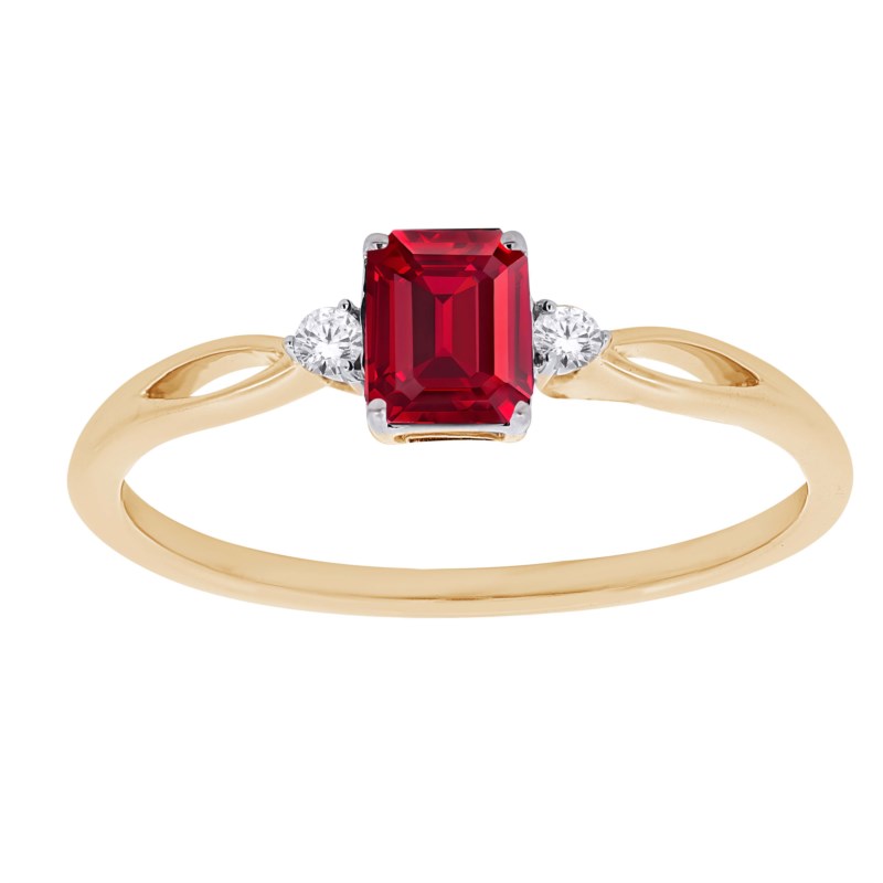 Gen Ruby Emerald Cut & .03tcw Diamond Ladies Ring 10KT