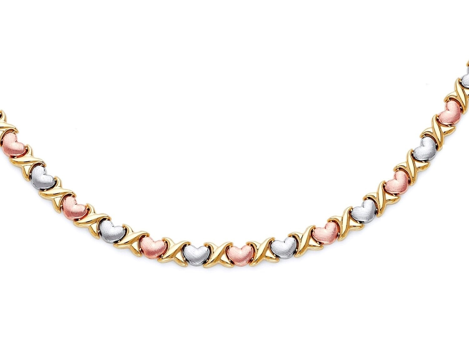 16″ Heart Hugs n Kisses Stampato Link Necklace 10KT TC/6MM *CLEARANCE-FINAL SALE*