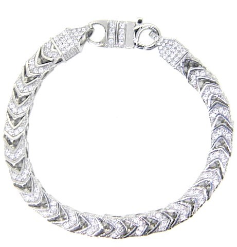 Cubic Zirconia Pave Square Franco Link 8.5″ Bracelet Sterling Silver/7MM