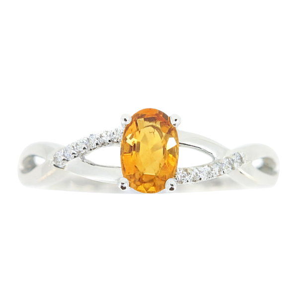 Genuine Amethyst 6×4 & .05TCW Diamond Accented Infinity Design Ladies Ring 10KT WG