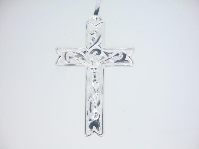 Engraved Crucifix Pendant Sterling Silver/36MM