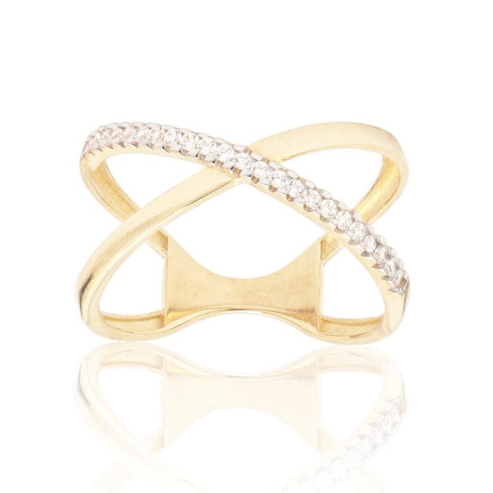 Crossover Cubic Zirconia Pave Ladies Ring 10KT