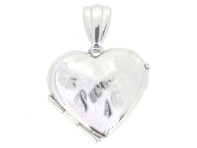 Sweet 16 Engraved Heart Locket 10KT WG/16MM *CLEARANCE- FINAL SALE*