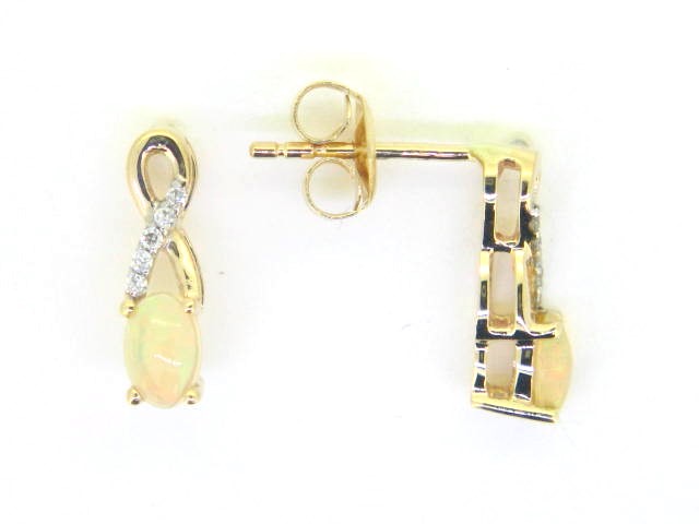 Genuine Opal 5×3 & .05TCW Diamond Accented Infinity Design Stud Earrings 10KT *FINAL SALE*