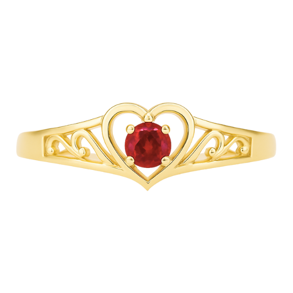 Heart Shaped Filigree Ring with 2.5mm Round Gen. Ruby 10KT