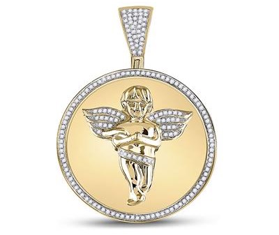 .50TCW Diamond Micro Pave Angel Medallion Pendant 10KT/30MM *CLEARANCE-FINAL SALE*