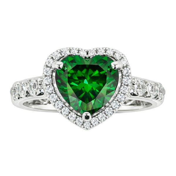 Sim. Green Stone Heart Shape & Cubic Zirconia Halo Ladies Ring Sterling Silver