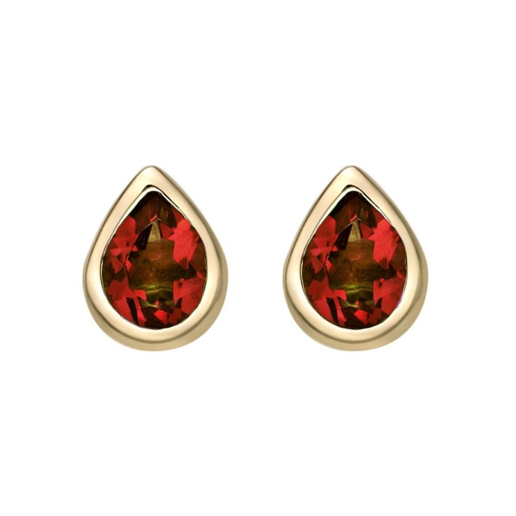 Genuine Garnet 4×3 Pear Bezel Studs 10KT *FINAL SALE*