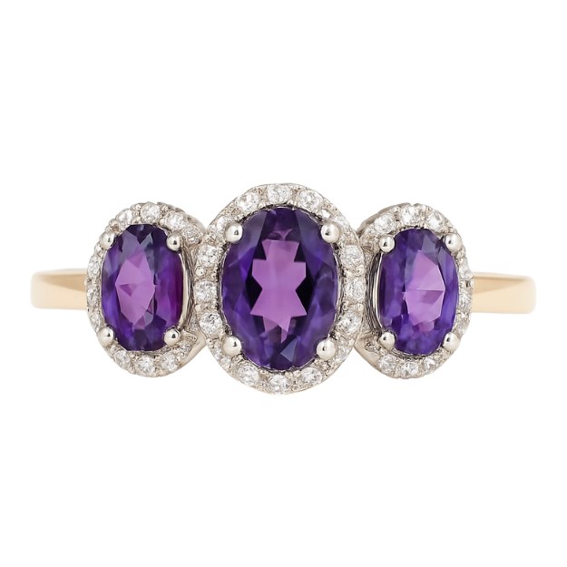 Gen. Amethyst Oval 6×4/5×3 & .17TCW Diamond Trio Ladies Ring 10KT