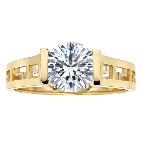 6.5MM Round Cubic Zirconia Greek Key Deisgn Half Bezel Solitaire Ladies Ring 10KT