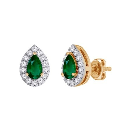 Gen. Emerald Pear 5×3 & .10TCW Diamond Cluster Screwback Stud Earrings 14KT *FINAL SALE*