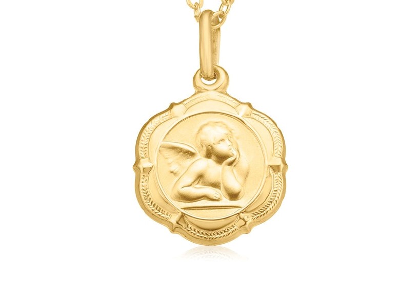 Baby Angel with Scroll Frame Italian Pendant 10KT/14MM