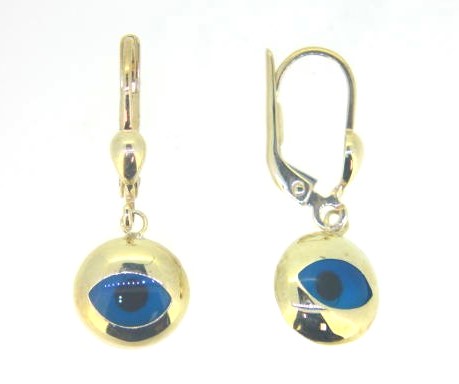 10MM Evil Eye Round Dangle Lever Back Earrings 10KT *CLEARANCE-FINAL SALE*
