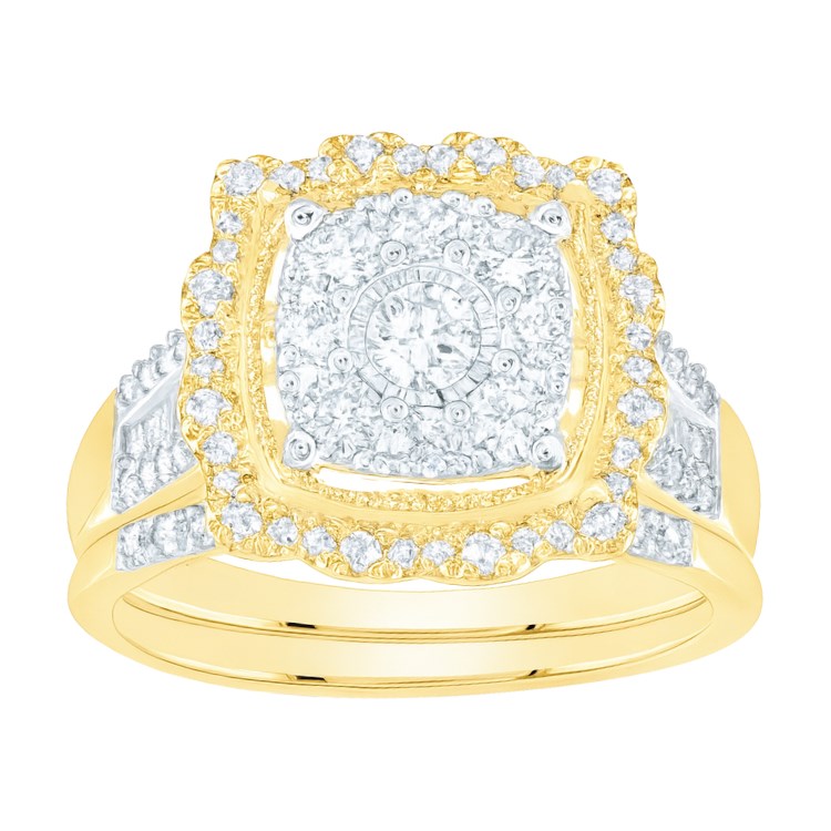 1.0TCW Diamond Scalloped Cushion Shaped Halo 2 Pce Engagement Set 10KT
