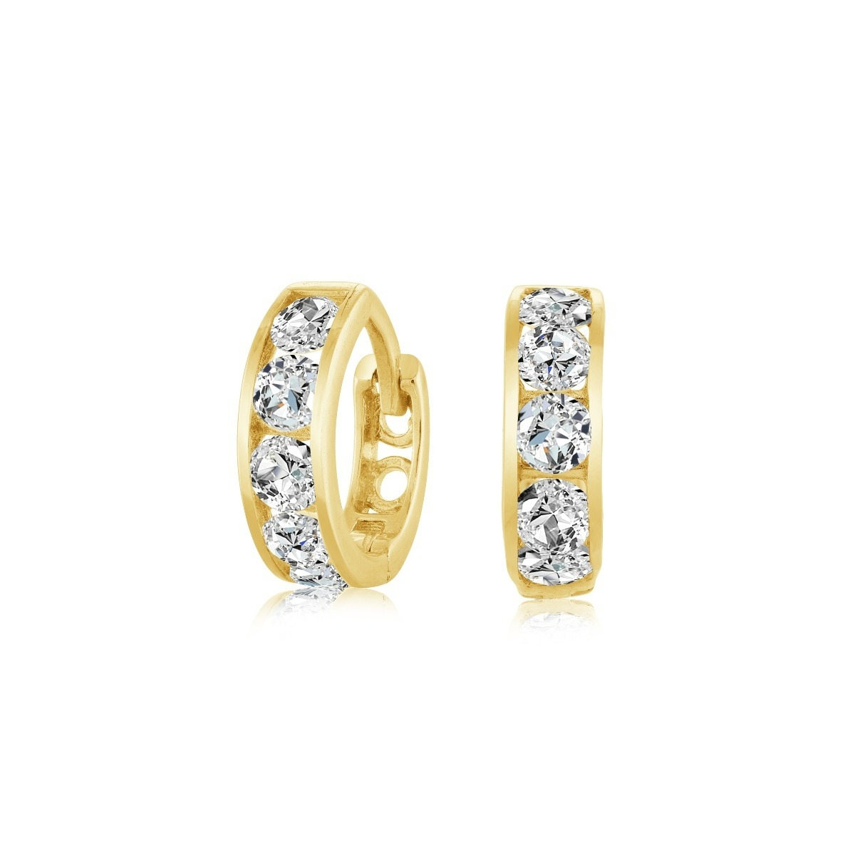 3MM Cubic Zirconia Channel Set Baby Size Huggie Hoop Earrings 10KT/9MM *FINAL SALE*