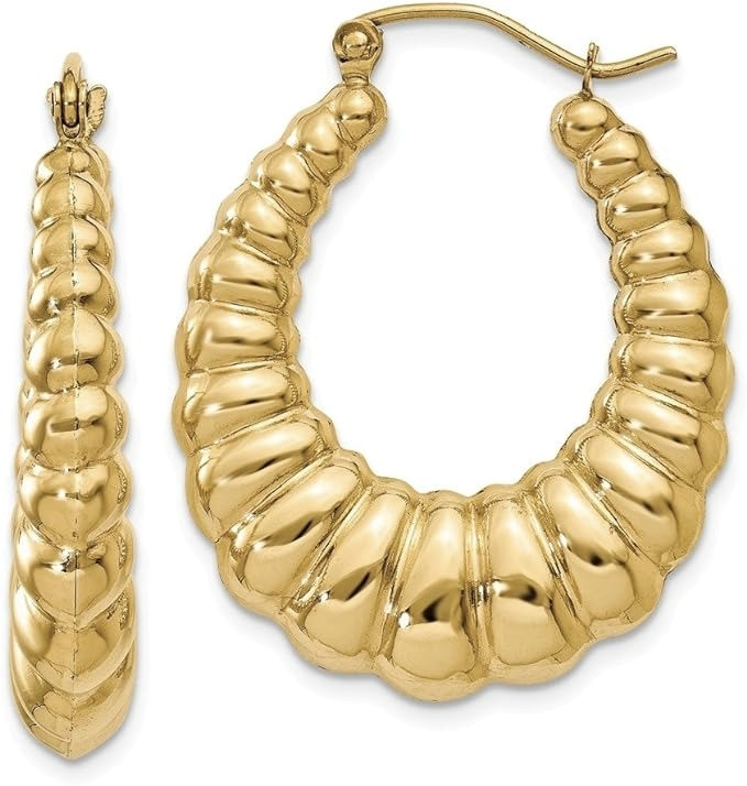 Oval Shrimp Creole Puffy Hoop Earrings 10KT/35MM *CLEARANCE-FINAL SALE*