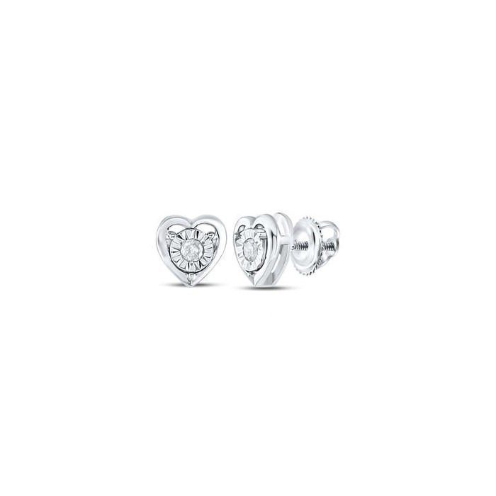 .05TCW Diamond Heart Stud Earrings Sterling Silver/6MM *FINAL SALE*