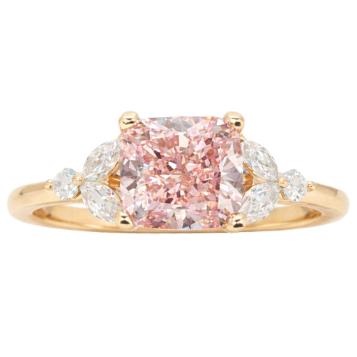 2.01CT VS2 Fancy Vivid Pink Sqr.Cushion Cut LAB Diamond & .27tcw/6 VS FG Round LAB Dia s 14KT Laser Engraved Cert# LG711531172