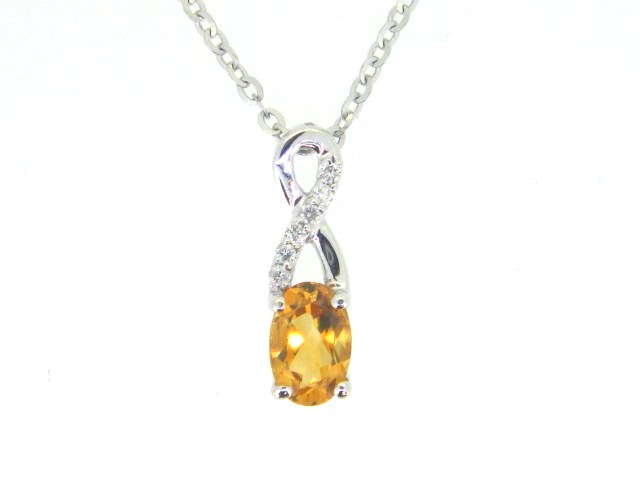 Genuine Citrine 6×4 & .03TCW Diamond Accented Infinity Design Pendant with 18″ Chain 10KT WG