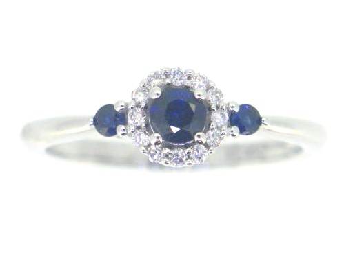 Genuine Blue Topaz 6×4 & Diamond Halo Ladies Ring 10KT WG