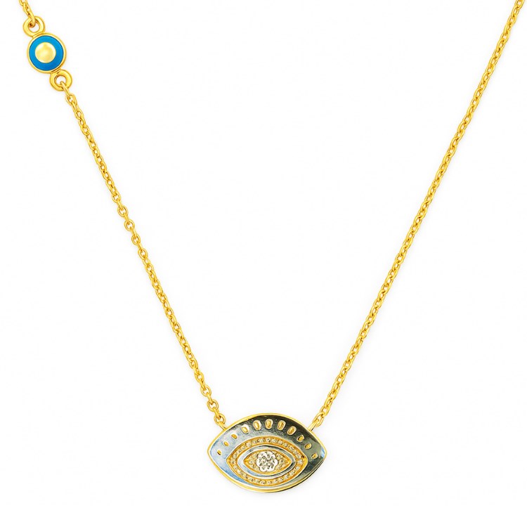 Evil Eye Cubic Zirconia & Blue Accent Eye 16″ Necklace 10KT