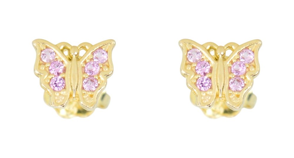 Pink Cubic Zirconia Butterfly Stud Baby Screwback Earrings 10KT *FINAL SALE* quantity