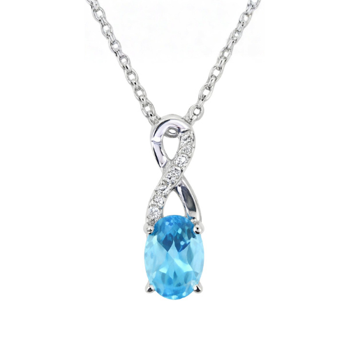 Genuine Blue Topaz 6×4 & .03TCW Diamond Accented Infinity Design Pendant with 18″ Chain 10KT WG