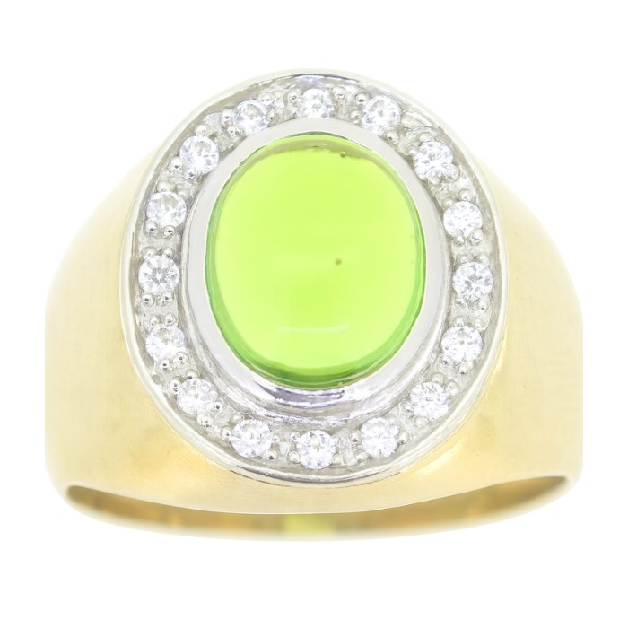 Sim. Peridot Oval Cabochon & Cubic Zirconia Gents Ring 10KT *CLEARANCE-FINAL SALE*
