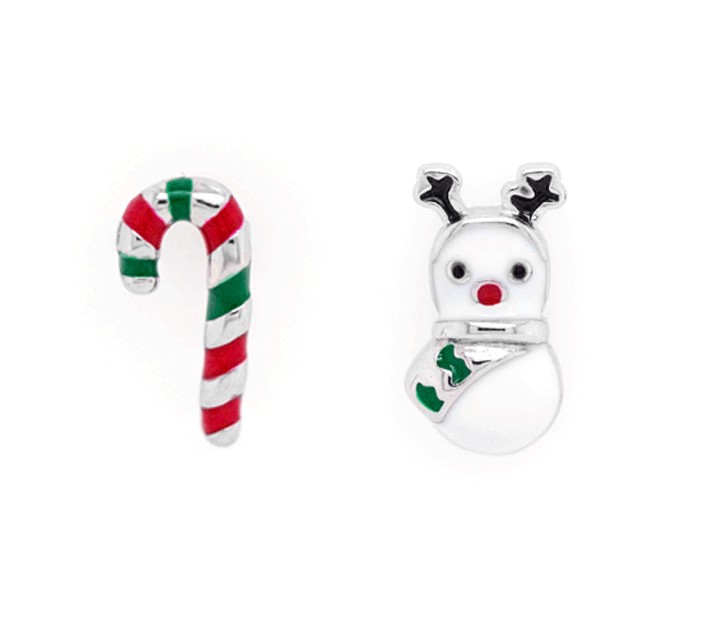 Enamel Holiday Mismatched Snowman & Candy Cane Stud Earrings Sterling Silver **Final Sale**