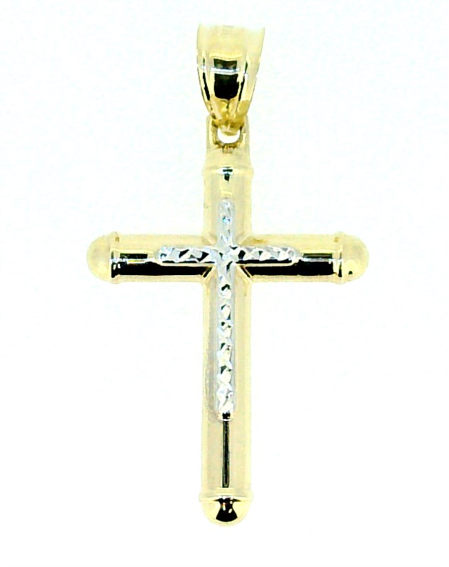 4MM Tube D.Cut Centre Cross Pendant 10KT TT/38MM