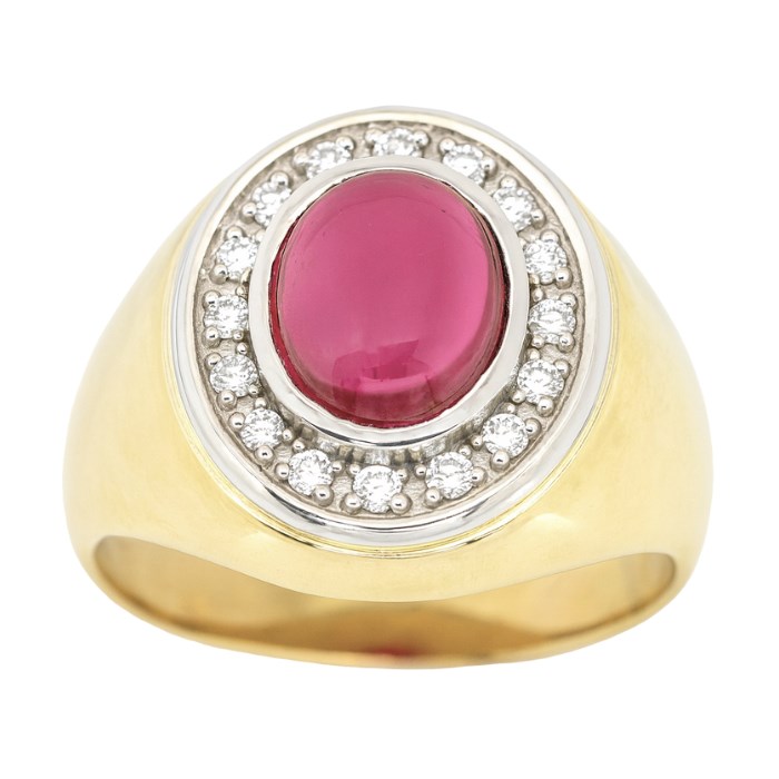 Sim. Ruby Oval Cabochon & Cubic Zirconia Gents Ring 10KT *CLEARANCE-FINAL SALE* quantity