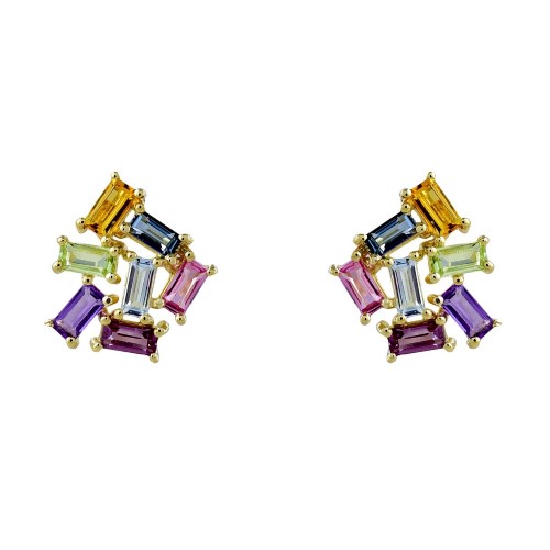 Genuine Multi Gemstone Rainbow Baguette Cluster Stud Earrings 10KT *CLEARANCE-FINAL SALE*