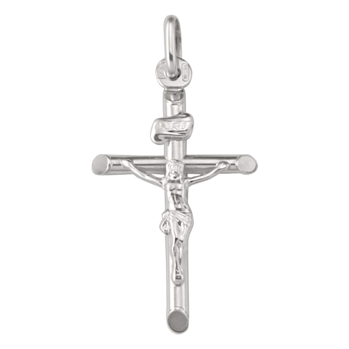 2MM Tube Crucifix Pendant Italian 10KT WG/28MM