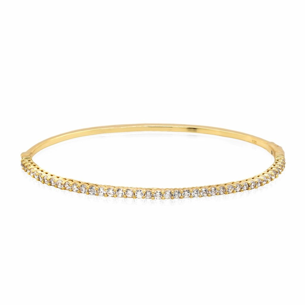 2MM Cubic Zirconia Oval Hinged Bangle Bracelet Gold Plated Sterling Silver