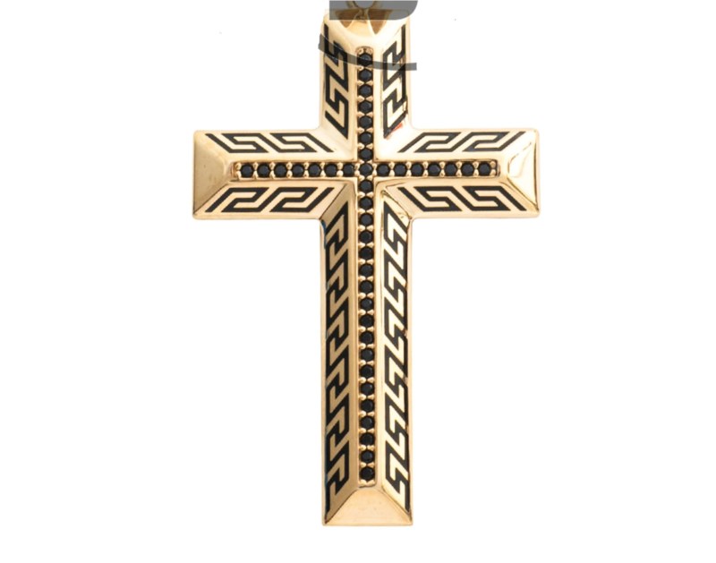 7MM Beveled Greek Key Black Enamel Patterned Cross with Black Cubic Zirconia/42MM quantity