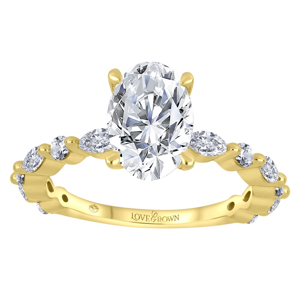 2.03CT VS1 F Oval LAB Diamond & .38TCW/8 VS F Marquise & Round Brilliant LAB Diamonds Accented Shank Engagement Ring 14KT CERT# LG600342297