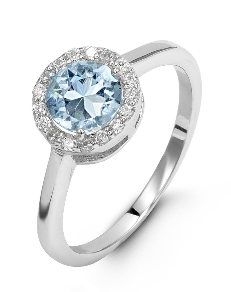 Simulated Birthstone & Cubic Zirconia Halo Ladies Ring Sterling Silver/MAR