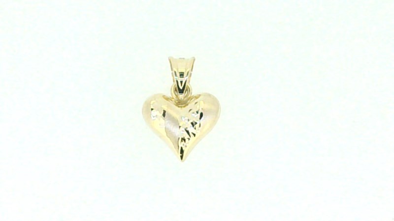 D.Cut & Satin Finish Puffed Heart Pendant 10KT/12MM