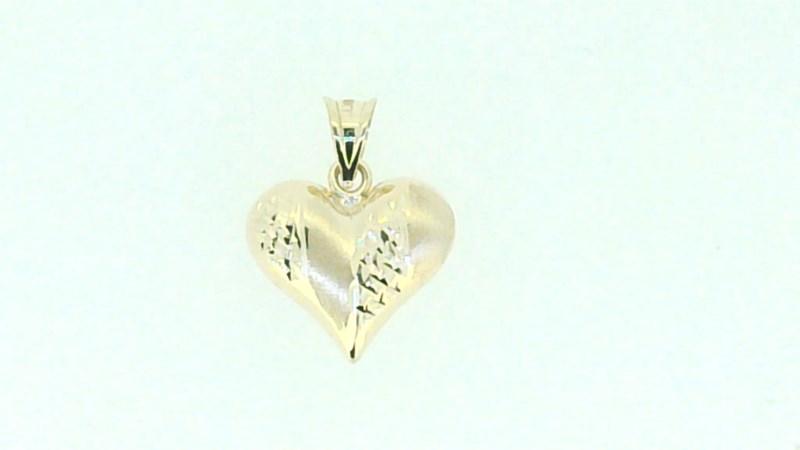 D.Cut & Satin Finish Puffed Heart Pendant 10KT/15MM