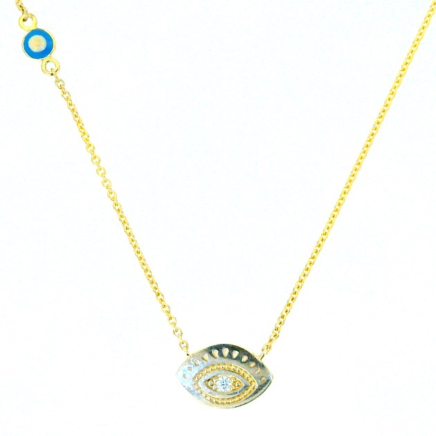 / Evil Eye Cubic Zirconia & Blue Accent Eye 16″ Necklace 10KT