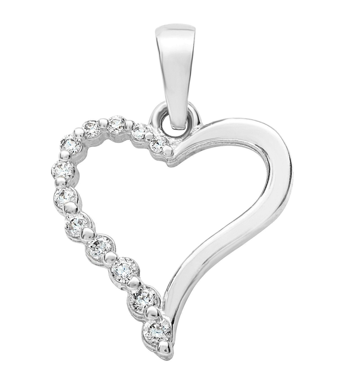 Open Heart with Cubic Zirconia Graduated Pendant 10KT WG/15MM