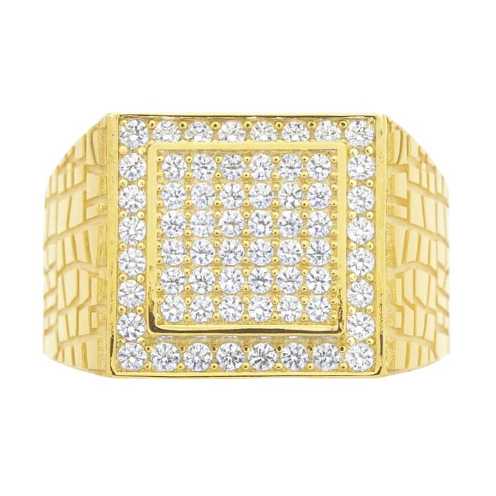Cubic Zirconia Pave Square Halo with Textured Shank Gents Ring 10KT/16MM